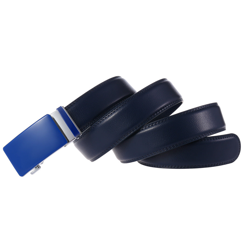 Ceinture homme cuir refendu texturé à boucle automatique multicolore.