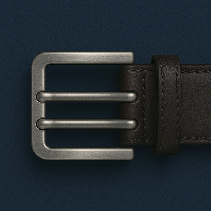La boucle carrée affirme une géométrie nette et structurée. Son design angulaire donne une touche graphique à la ceinture. Elle offre un maintien précis tout en soulignant le caractère.