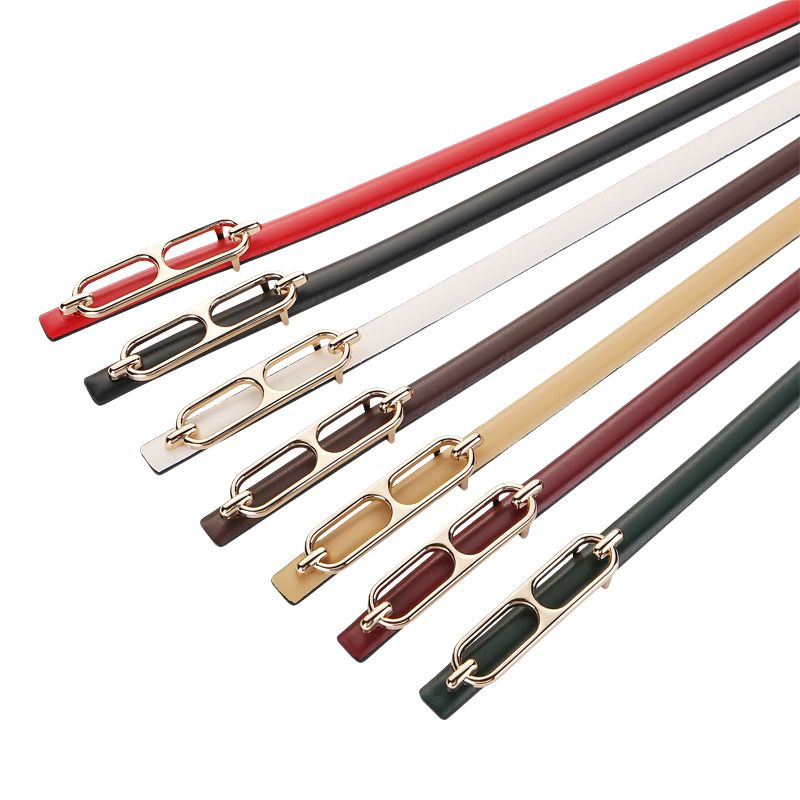 Ceinture femme cuir pleine fleur fine boucle double arrondie dorée