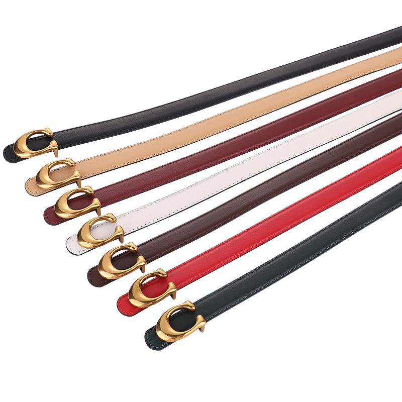 Ceinture femme cuir pleine fleur boucle C dorée extra fine