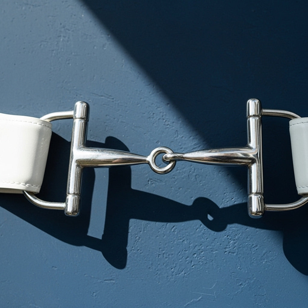 La boucle mors de cheval s’inspire de l’univers équestre pour une allure chic et sophistiquée. Elle se distingue par ses éléments entrelacés qui rappellent les brides de sellerie. Ce type de boucle sublime toute ceinture en cuir haut de gamme.