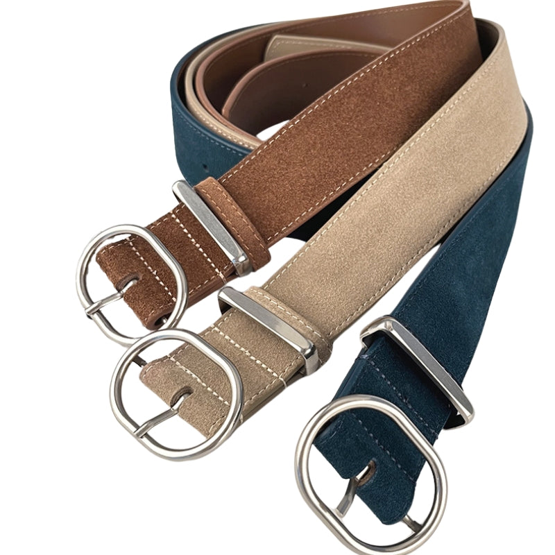 Ceinture femme en cuir daim lisse 95T avec boucle ovale allongée élégante
