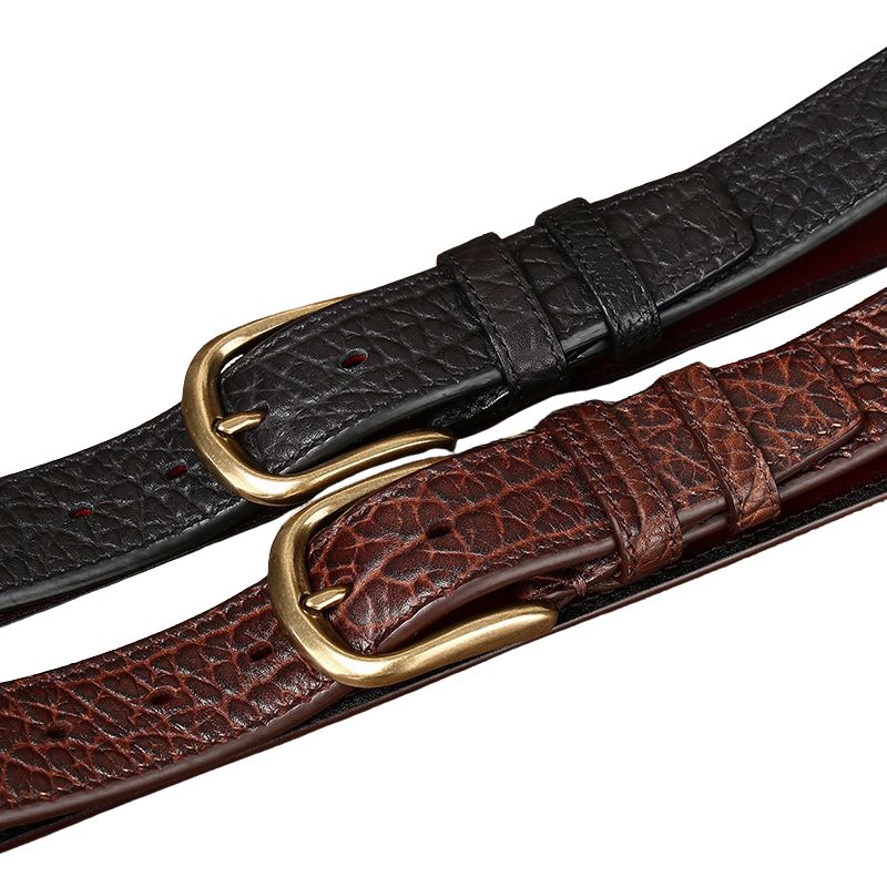 La ceinture Verlaine 2 pour homme incarne la robustesse et l’élégance naturelle du cuir de buffle. Réalisée en cuir pleine fleur pigmenté, elle présente une lanière texturée (20T) qui imite parfaitement la peau brute du buffle, lui conférant un style puissant et authentique. Sa largeur de 3,8 cm et son épaisseur renforcée de 5 mm assurent une résistance remarquable, parfaitement adaptée à un usage quotidien.