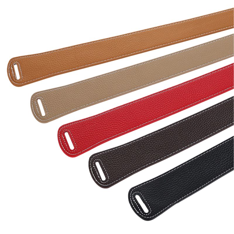 Elle ne possède ni trous ni boucle métallique, mais se noue autour de la taille. Ce système offre une grande liberté d’ajustement tout en apportant une finition soignée et contemporaine. La couture contrastée blanche ajoute un détail visuel raffiné qui accentue son allure haut de gamme.